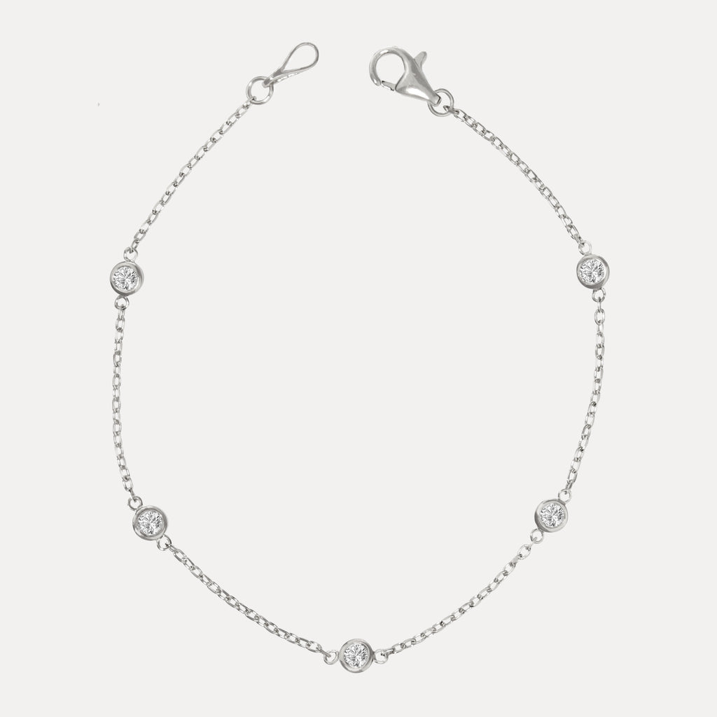 A sparkling diamond-studded bezel set bracelet made from 14k white gold is the perfect day-to-day bracelet for every wardrobe.