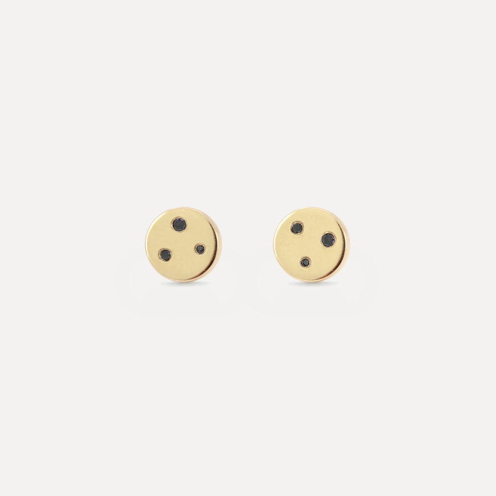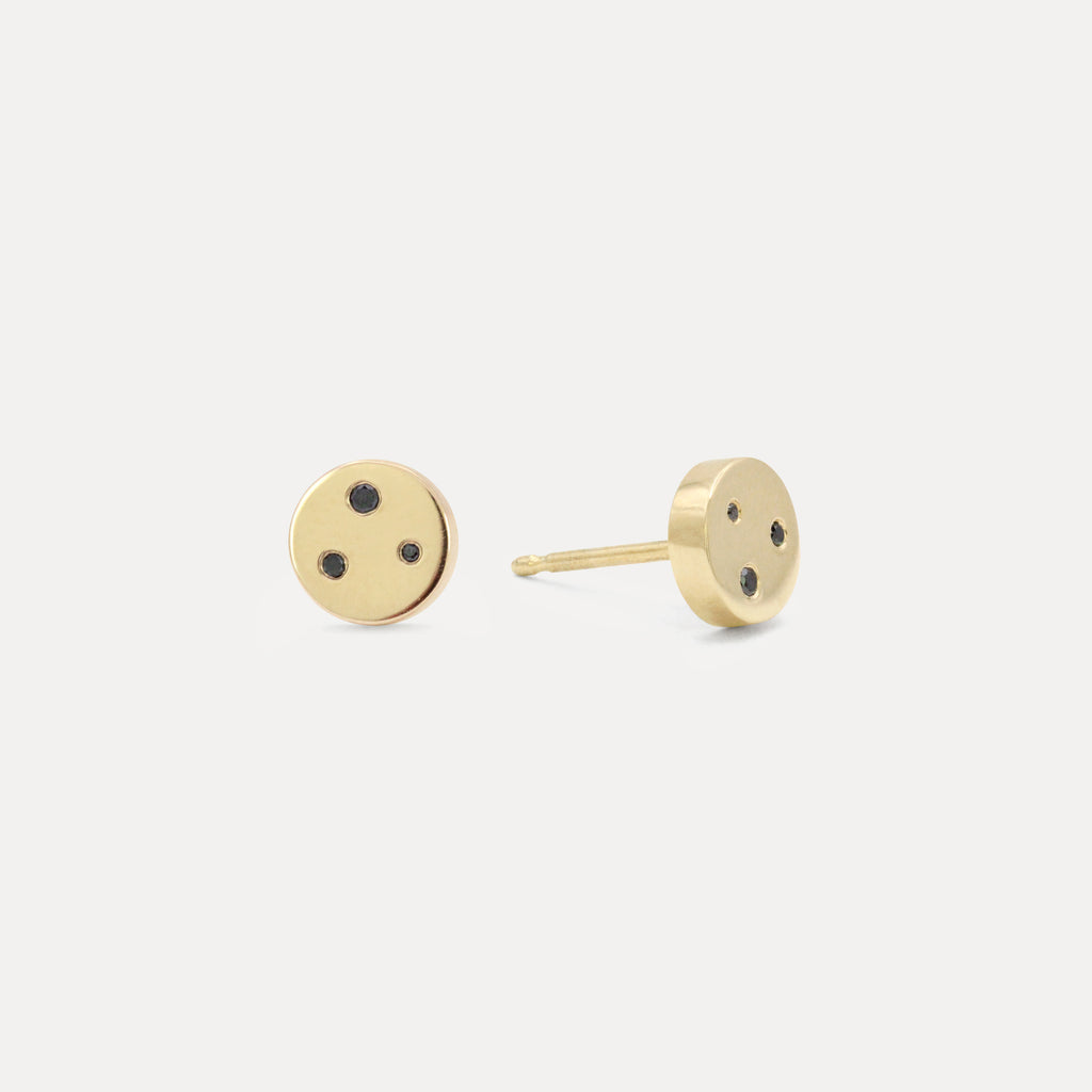 The perfect earrings for zodiac-obsessed and jewelry lovers alike. These 14k yellow gold studs are more than meets the eye, featuring a combination of white and black diamonds on each stud, reminiscent of a starry night sky.
