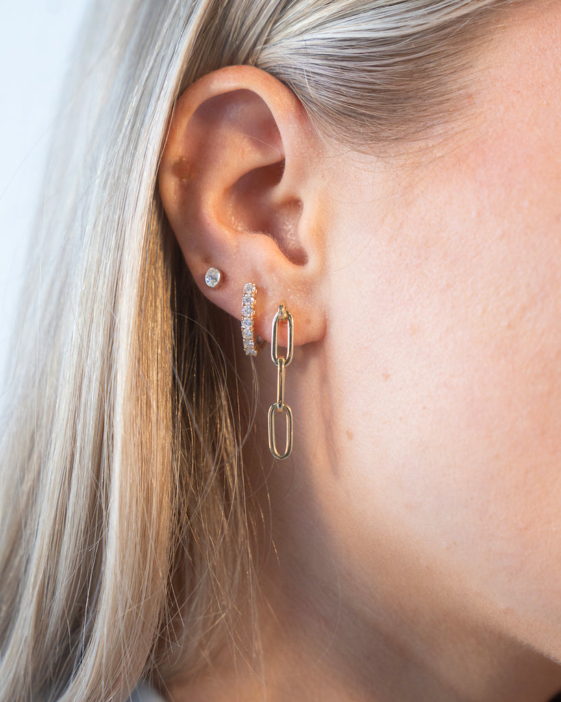 You can’t go wrong with these huggie hoops. Featuring 7 dazzling diamonds atop a 14k base, whether you let these be the moment in your first ear piercing, or stack them up in your second or third hole, there are no wrong decisions here.